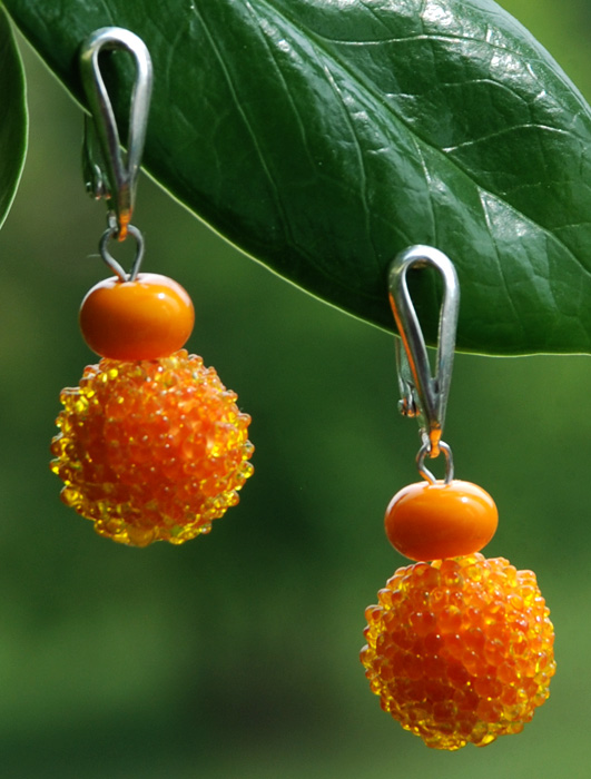 Материал: авторские стеклянные бусины лэмпворк, посеребреные швензы